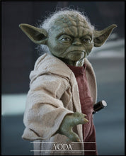 Star Wars ep II Attack of the Clones. Authentic work of art on this figure, highly detailed on the face of the great Master Yoda in the movie Attack of the Clones. 1/6 scale figure, with more than 23 points of articulation, a presentation box, and a special base to hold the figure, also contains his clothes and characteristic Jedi lightsaber, a cane to lean on and various effects of (power of the force). This figure of Yoda will leave you speechless to all lovers of the saga, we recommend it.